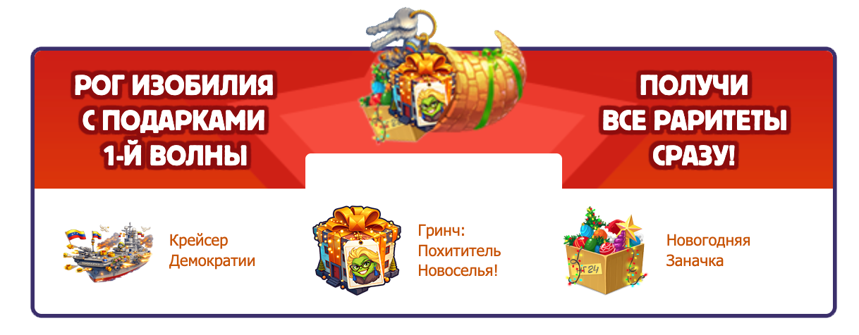 Рог изобилия — это предмет, который содержит в себе все раритеты текущей волны подарков сразу в максимальной модификации и является желанным призом для любого игрока!
